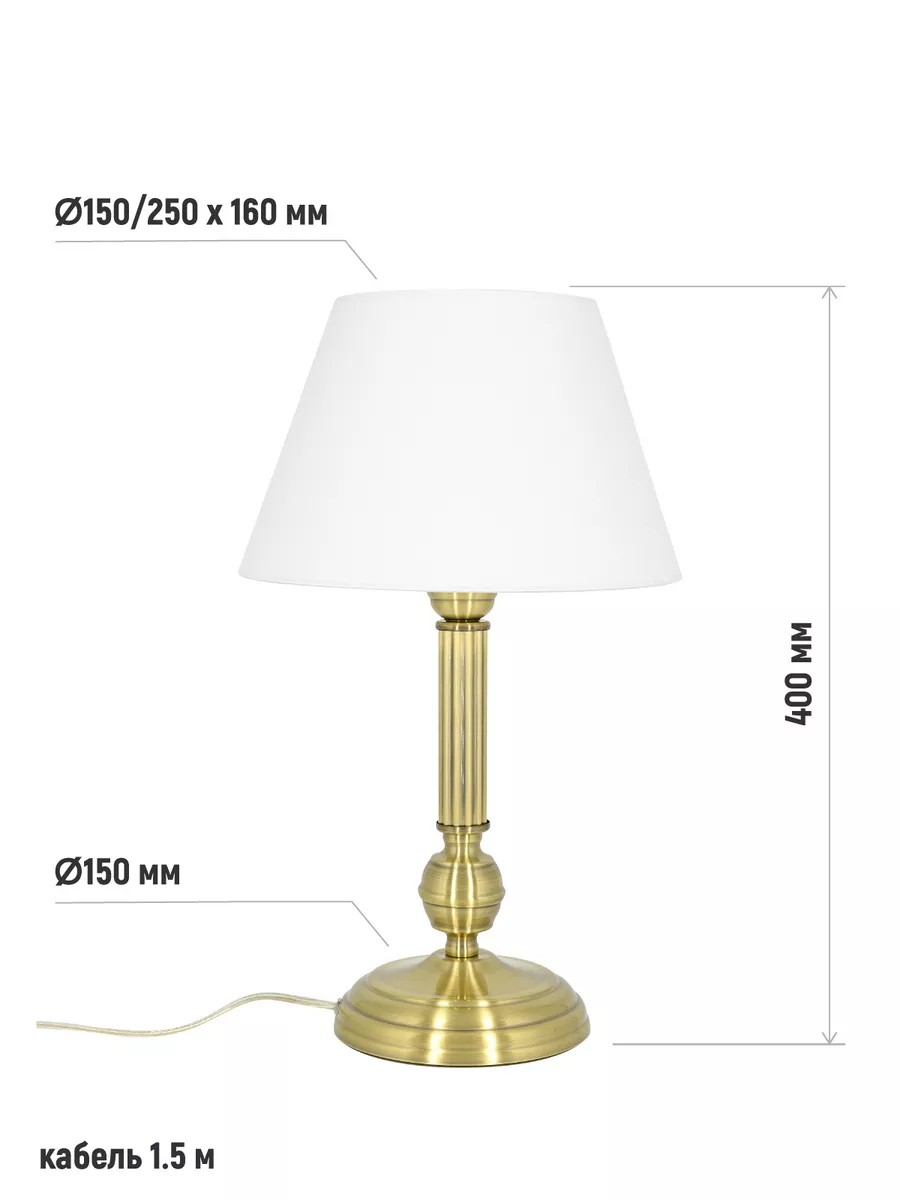 Светильник настольный сочетает с абажуром из ткани, придает ему современный и стильный вид. Основание имеет диаметр 16 см обеспечивает надежную устойчивость, а плафон размером 150/250 диаметр и высота 16 см добавляет шарма и оригинальности.