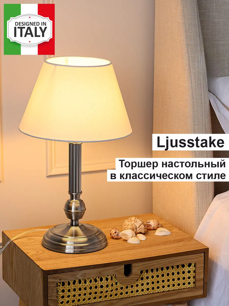 Высота торшера с абажуром из ткани 40 см, что делает его и привлекательным акцентом в спальне, гостиной или кабинете. Он отлично подойдет для чтения, создания уютного уголка или использования на тумбочке или полке.
