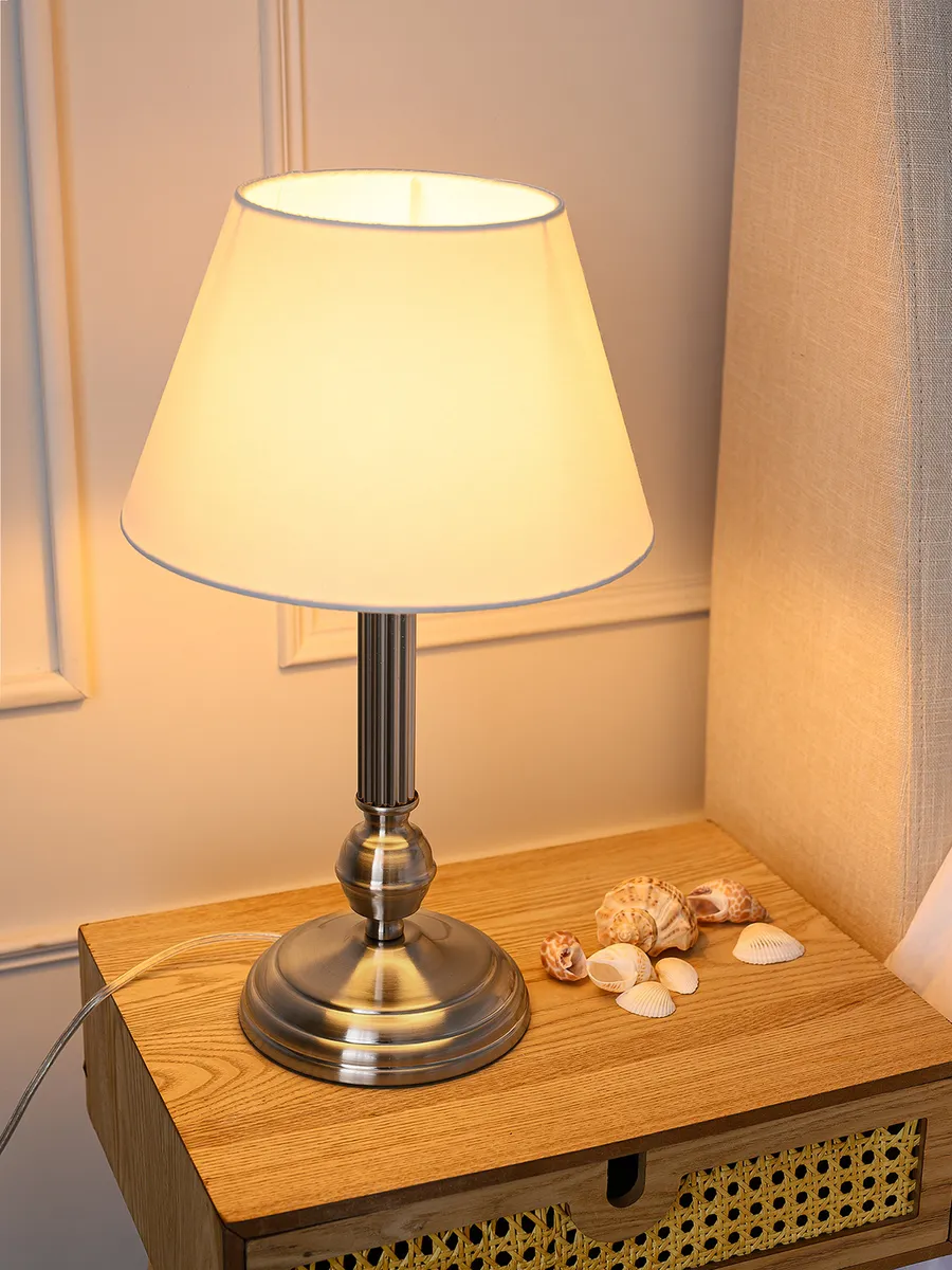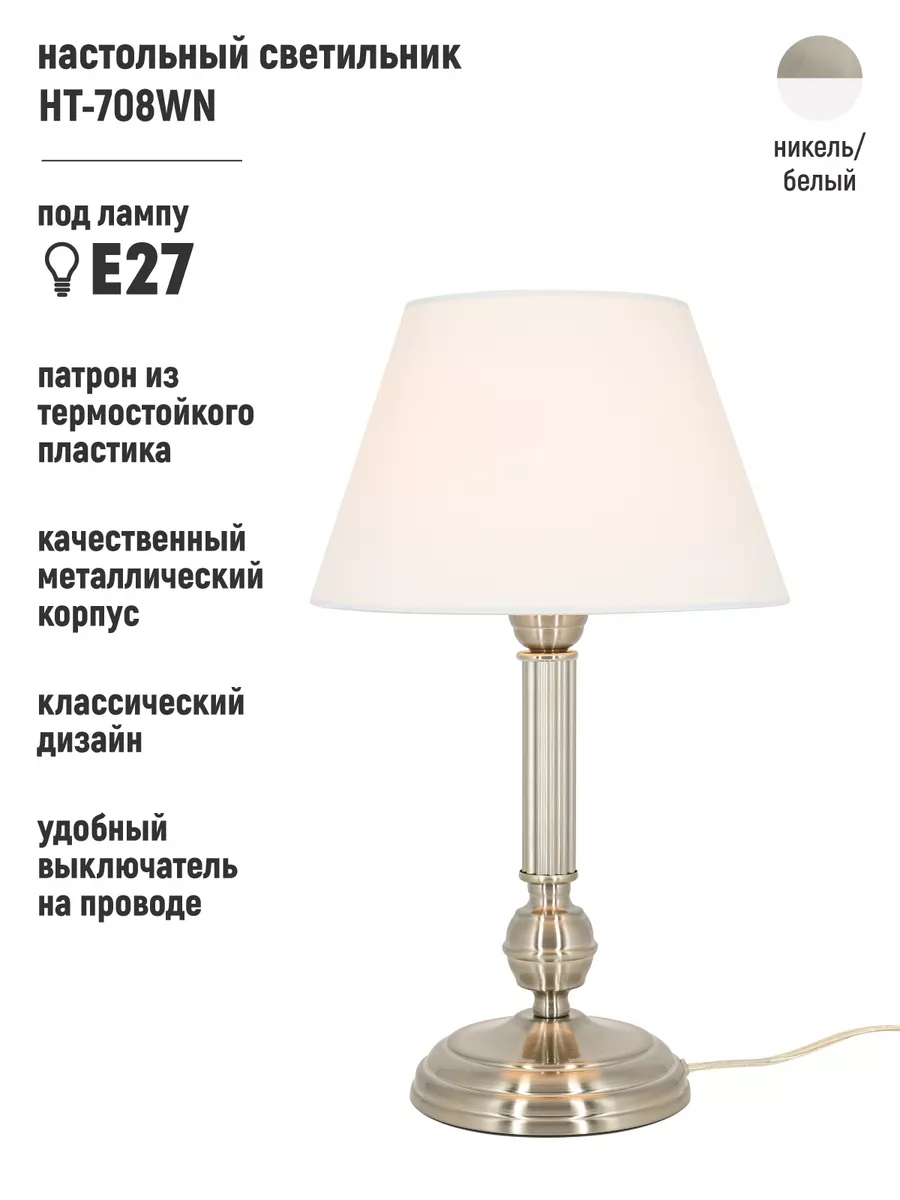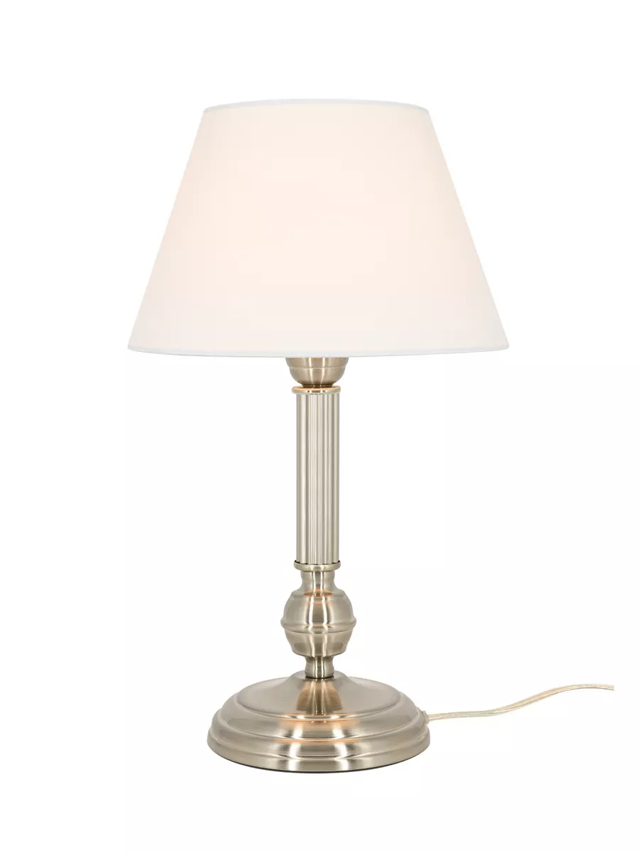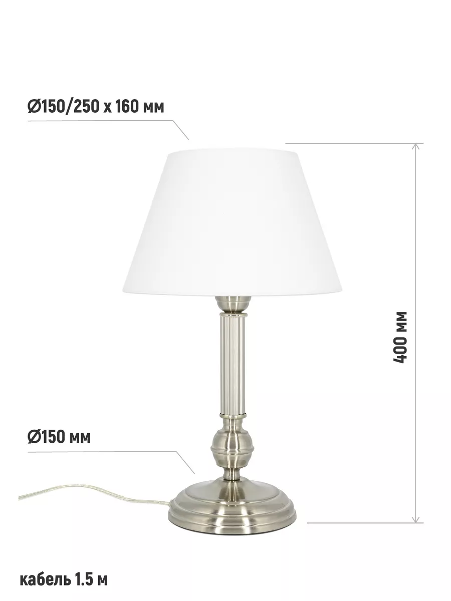 Светильник настольный сочетает с абажуром из ткани, придает ему современный и стильный вид. Основание имеет диаметр 16 см обеспечивает надежную устойчивость, а плафон размером 150/250 диаметр и высота 16 см добавляет шарма и оригинальности.