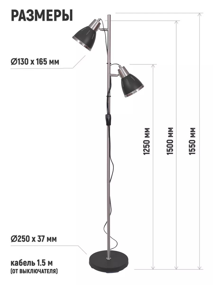 А удобный двухклавишный выключатель на проводе позволяет регулировать наполняемость светом Вашего помещения, за счет включения одного или сразу двух ламп, делаю такой торшер не только полезным но и универсальным.
