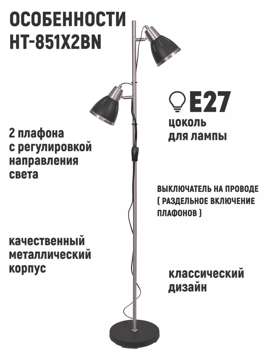 Представляем вашему вниманию стильный и современный торшер напольный с двумя плафонами, который станет отличным дополнением к любому интерьеру. Этот светильник идеально подойдет для освещения гостиной, спальни или прихожей.