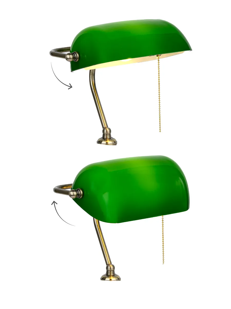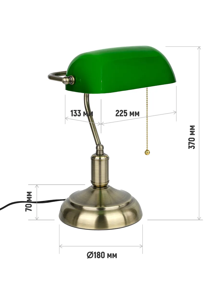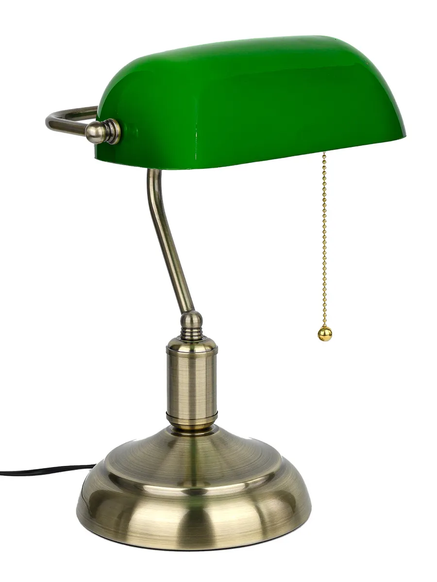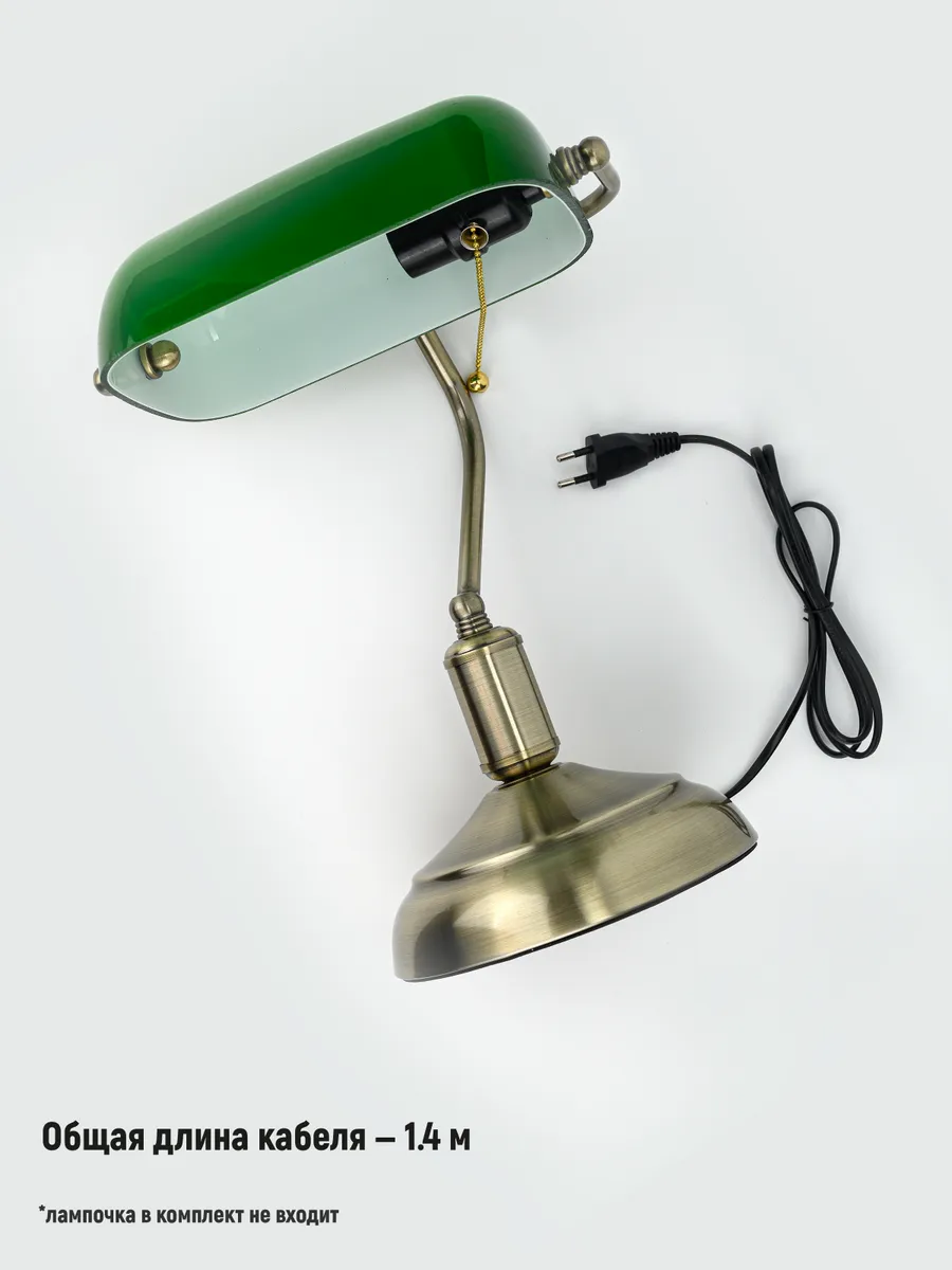 Изготавливаясь с вниманием к деталям, лампа банкира гармонично впишется в интерьер, создавая уютное и теплое освещение. Его уникальный дизайн и высококачественные материалы делают его не только функциональным, но и настоящим произведением искусства. Плафон из закаленного стекла и основание под латунь с патиной привнесут частичку старины в ваш дом или рабочее место с данной лампой. Она идеально подходит для чтения, работы или просто для создания особого вайба.