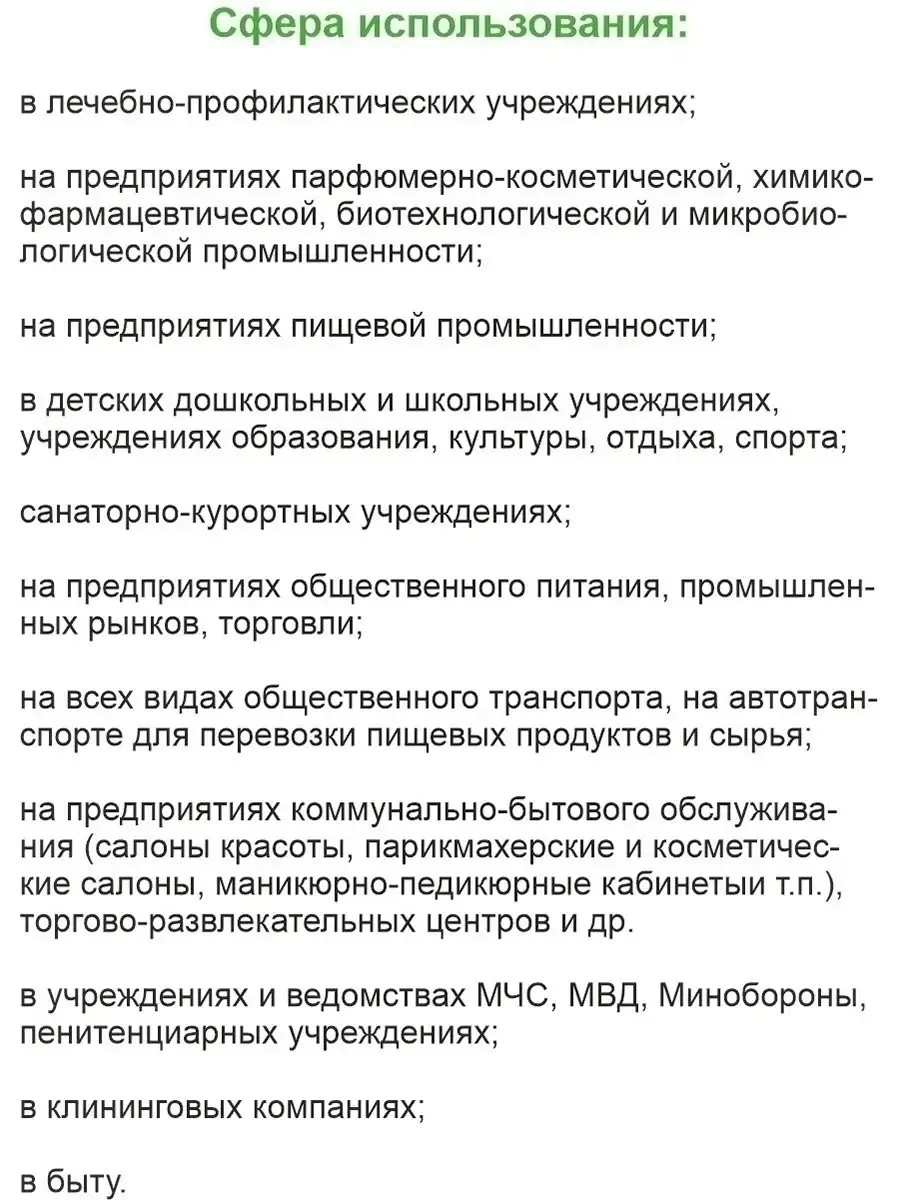 грамотрицательных и грамположительных бактерий (включая микобактерии туберкулеза Mycobacterium terrae),возбудителей внутрибольничных инфекций (ВБИ),кишечных инфекций, вирусов (включая рино-, норо-, рото-, адено-вирусы: вирусы энтеральных и парентеральных гепатитов (в т. ч. гепатита А, В и С), полиомиелита, ВИЧ, вирусов гриппа и парагриппа человека, вирусов «атипичной пневмонии» (SARS), вирусов герпеса, кори, возбудителей ОРВИ, цитомегалии, вирусов «свиного» гриппа H1N1 и «птичьего» гриппа H5N1), грибов рода Кандида и Трихофитон.
