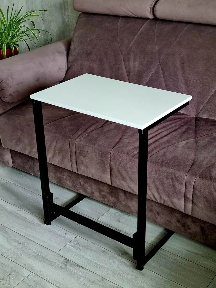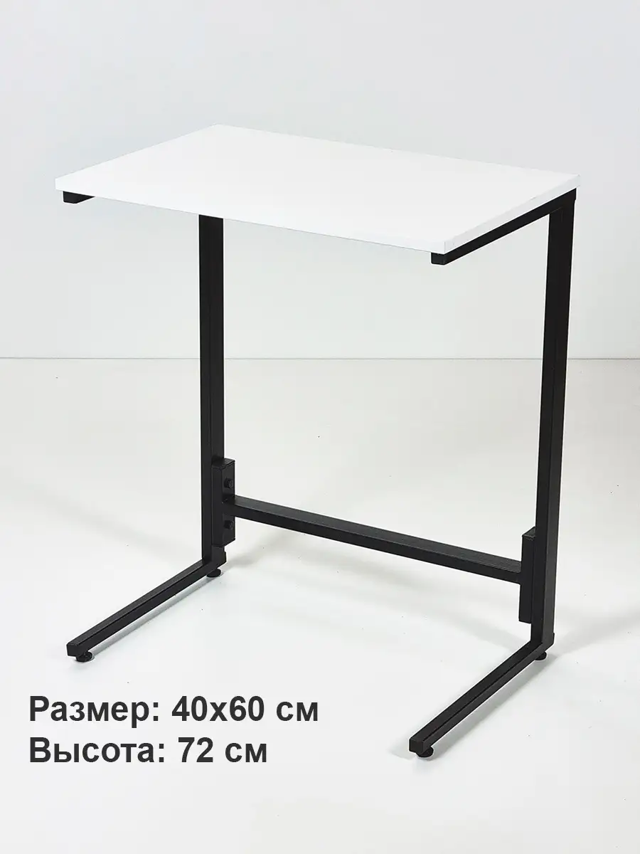Стильный журнальный приставной столик придиванный в стиле Loft (Лофт). Размер столешницы 40х60 см, высота столика 72 см. Столик для дивана имеет раздельные опорные ножки без перекладины, что позволяет задвинуть их практически под любой диван или кровать. Опоры столика снабжены регулируемыми ножками, которые позволяют установить прикроватный столик на любой, в т.ч. неровной поверхности. Столешница изготовлена из ЛДСП высокого качества с кромкой из ПВХ толщиной 2 мм. Рама из стального профиля сечение 20х20 мм с покрытием, выполненным по технологии порошкового окрашивания, которое не боится ударов, сколов, царапин. Журнальный столик приставной может использоваться как столик для ноутбука прикроватный, деревянный столик для завтрака, столик для вина и бокалов, столик для пива и закусок, маленький столик для балкона, приставной столик для косметолога, столик для чая и чайной церемонии, маленький столик в прихожую. Колесики приобретаются отдельно артикул: 84626075.